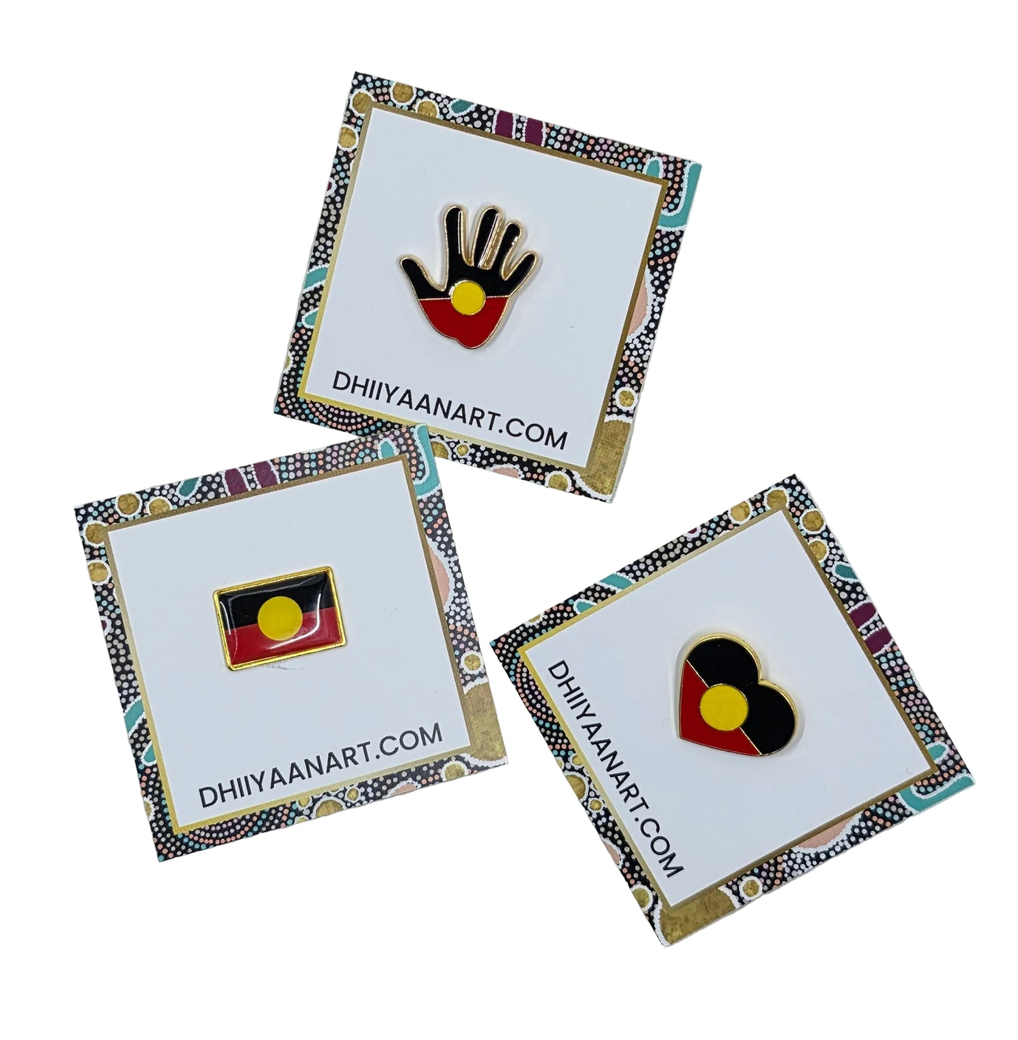 Elevate everyday style with Dhiiyaan Art Badges small enamel-style pins inspired by original artworks from Jessica Hopcroft. Lightweight and beautifully designed, these badges are perfect for expressing connection, culture and creativity. Wear them with scarves, bags, hats or jackets - or gift them as meaningful little treasures.